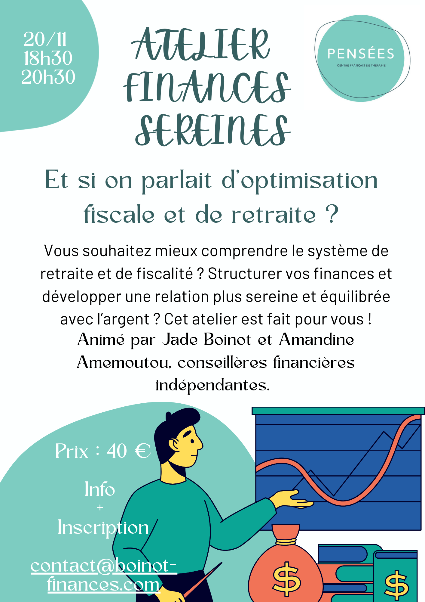 Finances Sereines — Objectif optmisation fiscale et retraite – l’atelier qui t’aide à y voir plus clair.